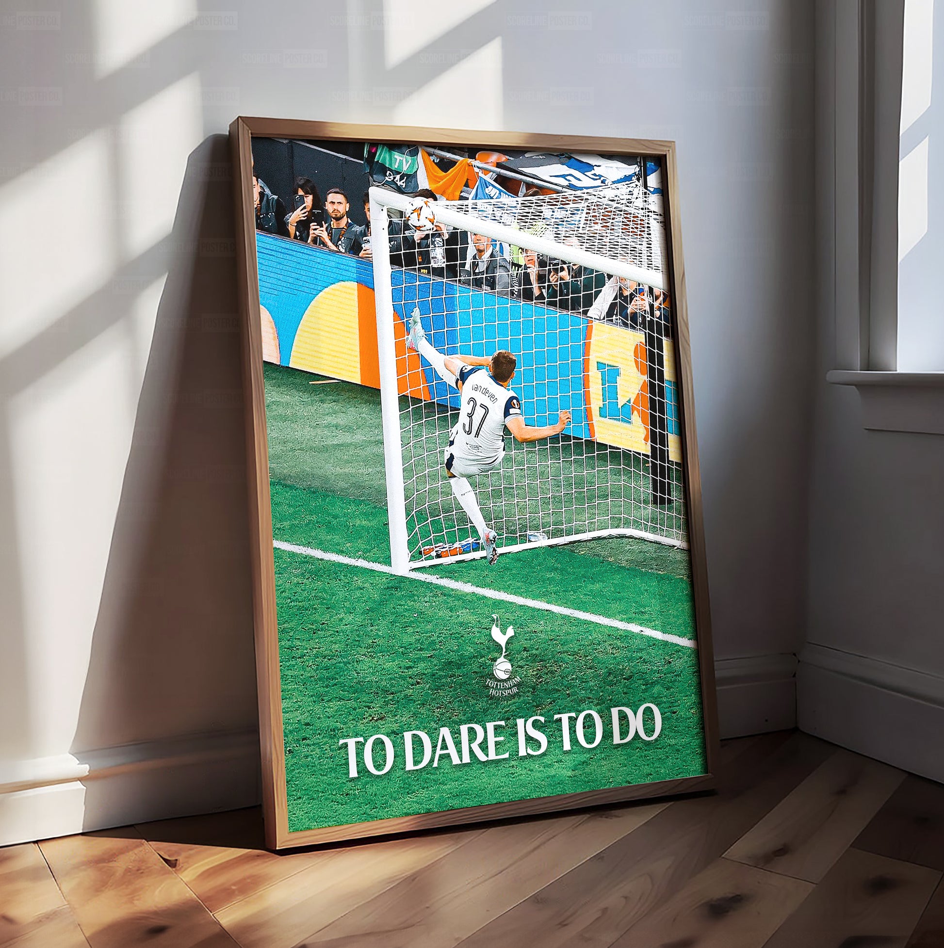 Celebrate a moment of pure defensive brilliance with this high-quality poster capturing Micky van de Ven’s iconic goal-line clearance in the UEFA Europa League Final against Manchester United.